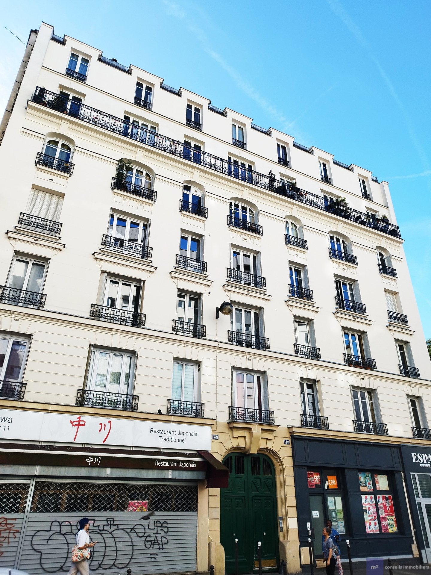 A louer, Paris 11 , rue Oberkampf, dans un immeuble pierre de taille, un deux pièces au 4ème étage sans ascenseur, vue dégagé.