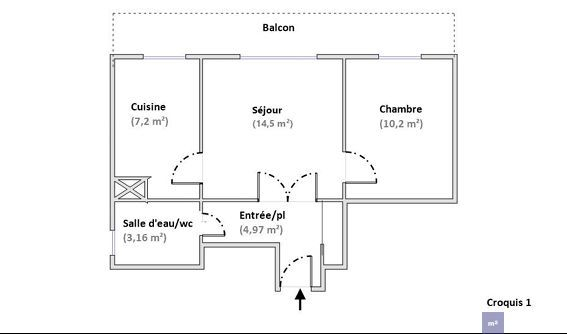 L'appartement se compose d'une entrée avec placards, d'une cuisine, d'un séjour lumineux, d'une chambre confortable, ainsi que d'une salle d'eau avec WC.